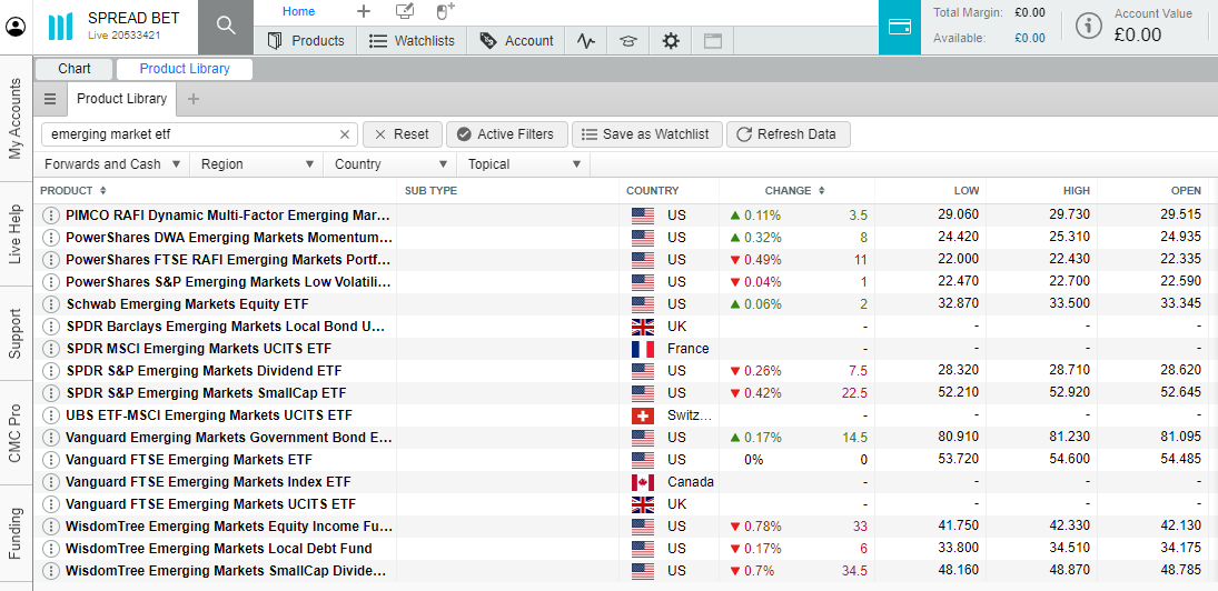 The number of opportunities available to traders and investors are unlimited when emerging market countries are included. There are more than 130 emerging market instruments available to trade on using spread bets and CFDs within our Next Generation trading platform, as well as more than 50 emerging market ETFs listed on the US Stock Market that are also accessible via the Product Library.